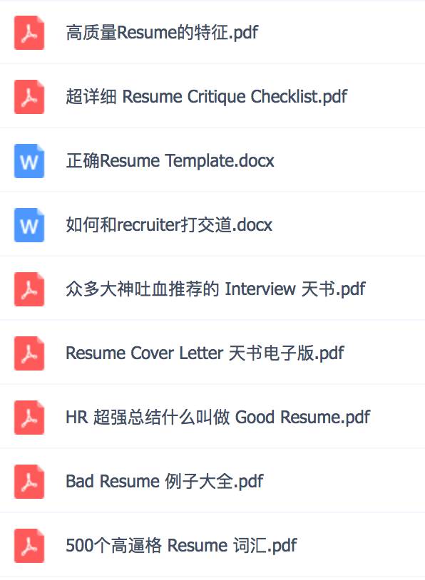 以及Harvard, Yale, Columbia, NYU排名前50名校Career Center推荐最优秀简历模版